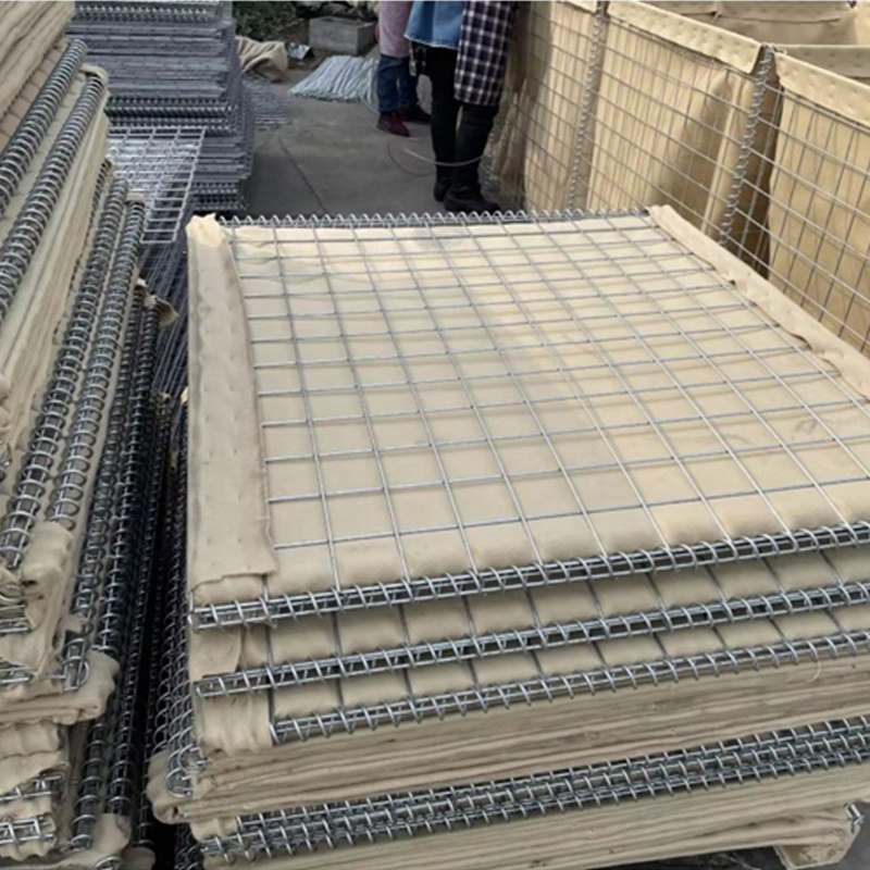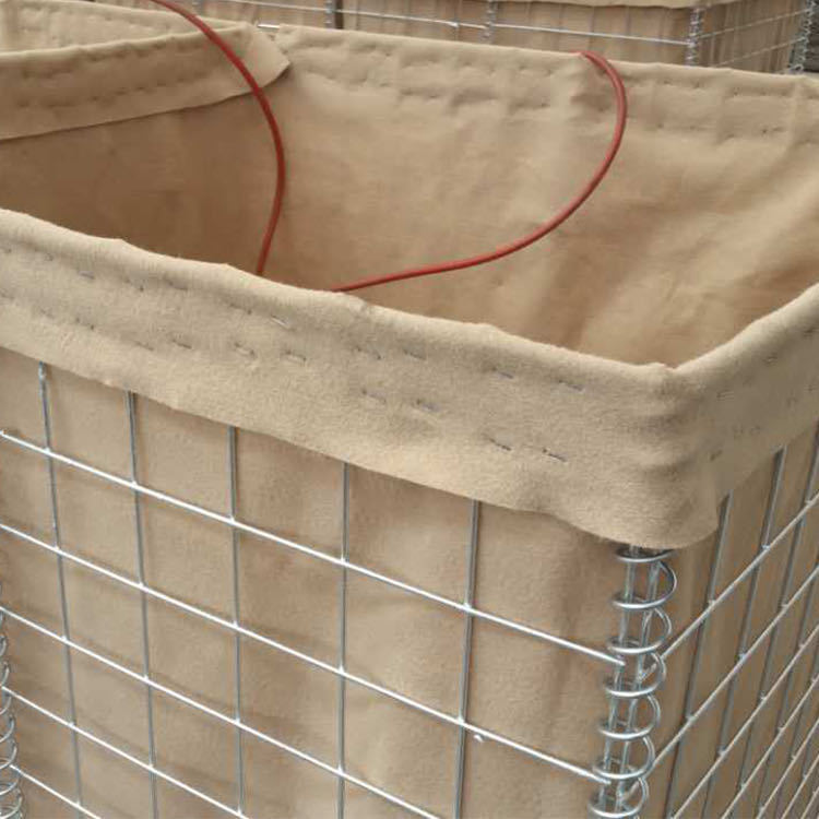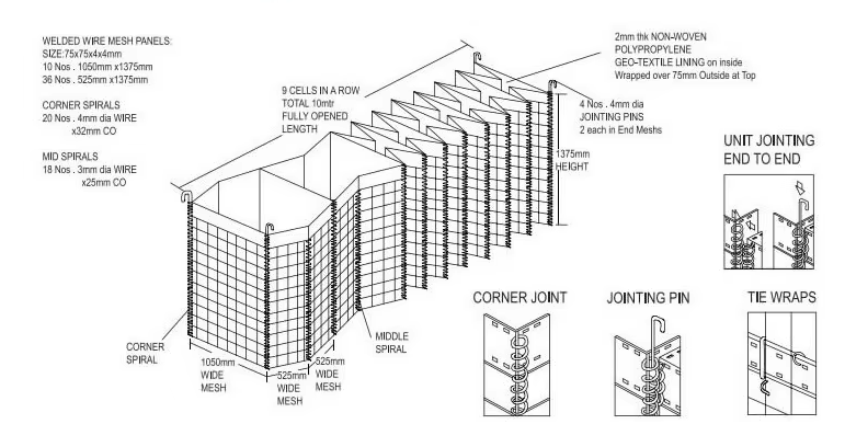 Defensive sand wall Defensive Barriers is a multi-cellular barrier system lined with heavy-duty, non-woven polypropylene geotextile and manufactured from welded Zinc-Aluminium coated steel mesh.