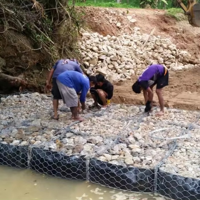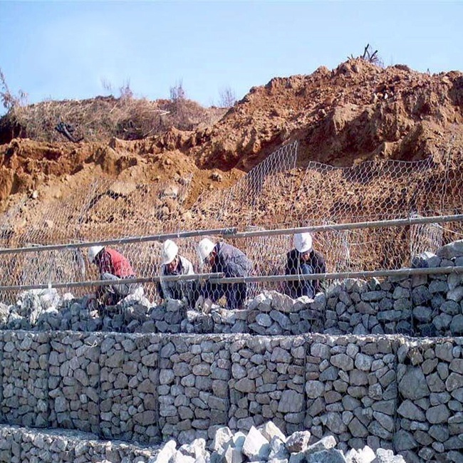 Gabion basket also named gabion box, is weaved by corrosion resistance, high strength and good ductility galvanized wire or PVC coating wire through mechanical. Wire's material is zinc-5% aluminum alloy (galfan), low carbon steel, stainless steel or iron.