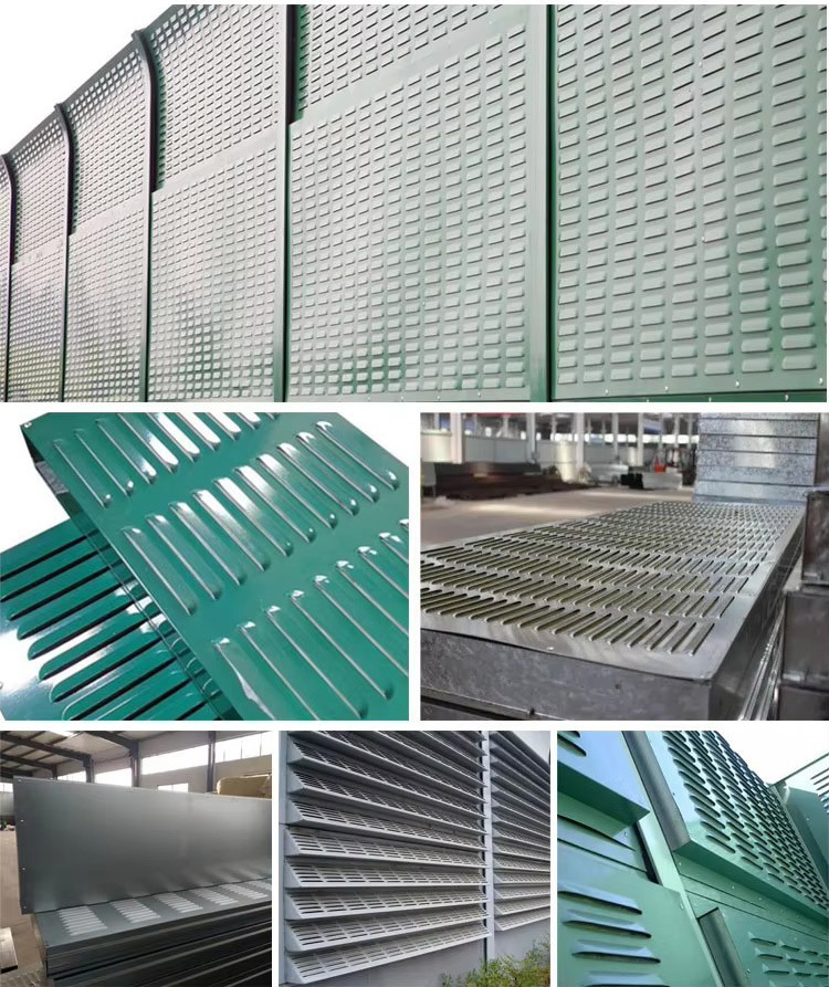 The main body of the sound insulation screen is mainly composed of galvanized metal sheets for louvers, glass fiber mesh and stone wool