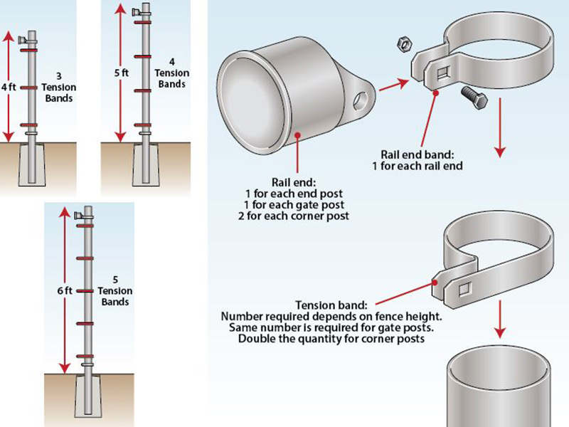 Add tension bands to all posts with the flat side pointing to the outside of the fence.If you have corner posts you will need 2 x tensions bands pointing to either side.