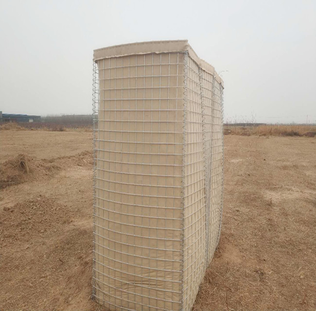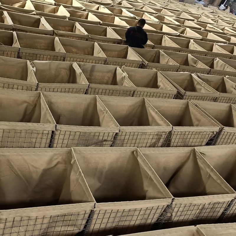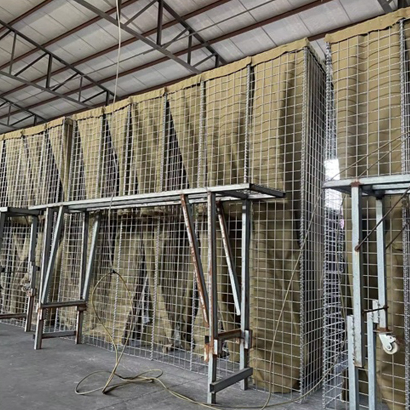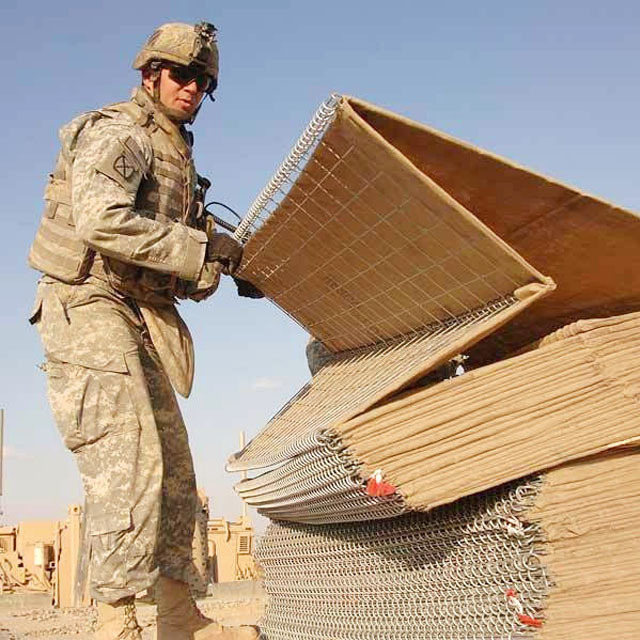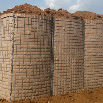 Defensive sand wall Defensive Barriers is a multi-cellular barrier system lined with heavy-duty, non-woven polypropylene geotextile and manufactured from welded Zinc-Aluminium coated steel mesh.